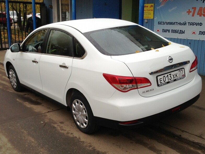 Московская прокатная компания «АрендаАвто-грд» предлагает взять в аренду Nissan Almera IV MT белого цвета с механической коробкой передач по низкой цене.